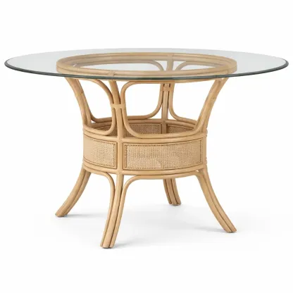 Table à Manger Ronde en Verre et Rotin Naturel